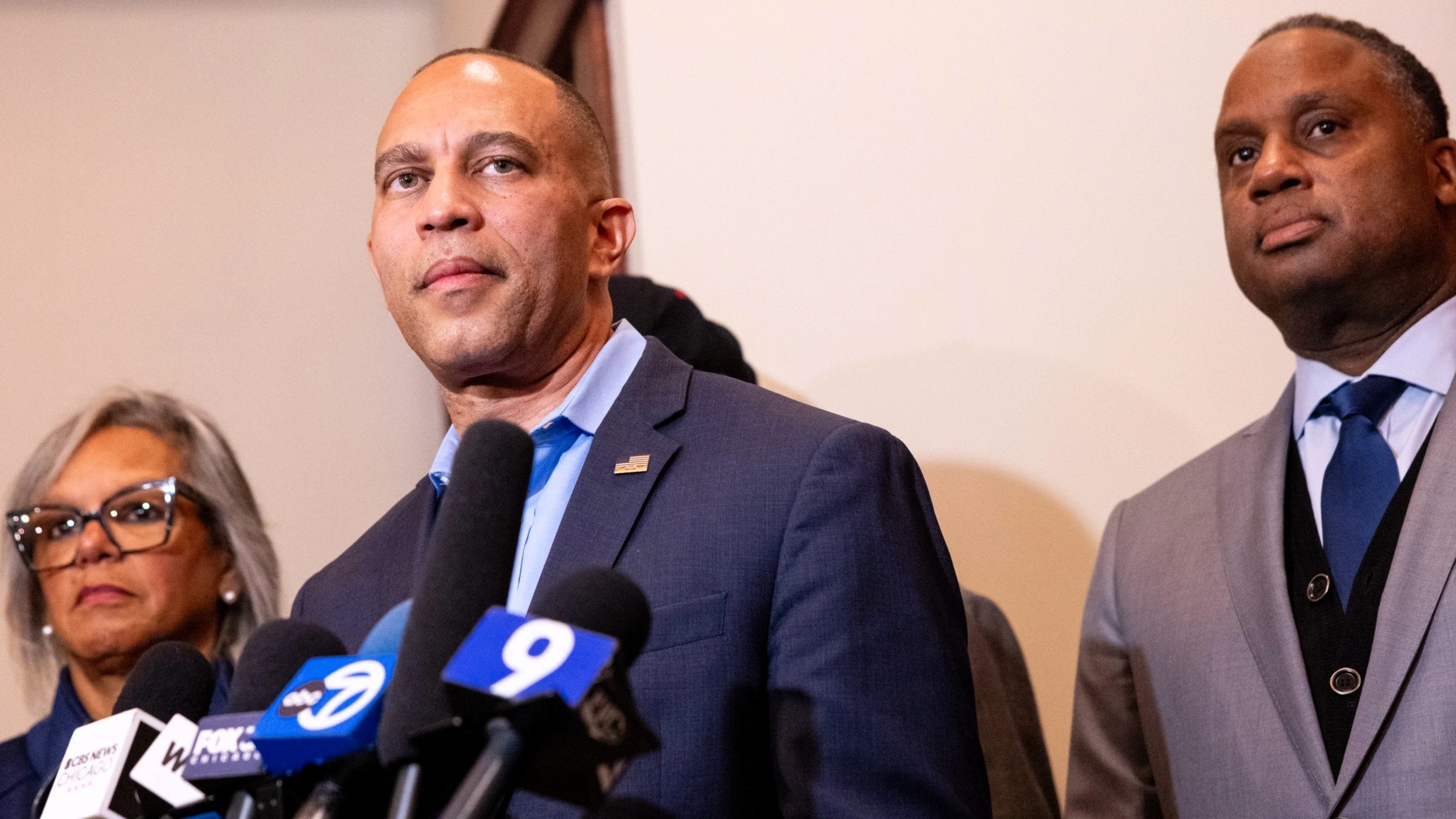 House Democratic Leader Hakeem Jeffries of New York met with members of the Illinois Legislative Black Caucus in Chicago Monday morning, urging Black lawmakers to overcome concerns with diluting the state’s Black-majority congressional districts to squeeze out a 15th Democratic seat.