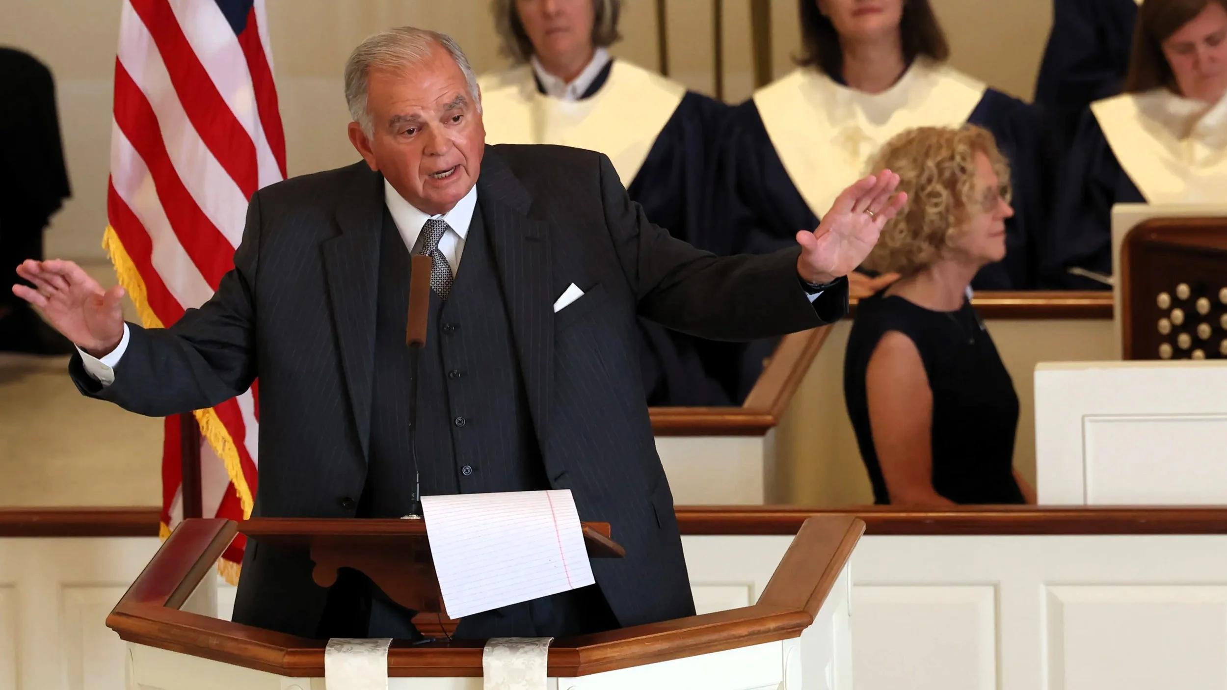 Former Transportation Secretary Ray LaHood eulogizes former Gov. Jim Edgar at Edgar’s funeral in September. LaHood will succeed Edgar as the “face” of the Edgar Fellows program. (Photo: Chicago Tribune)