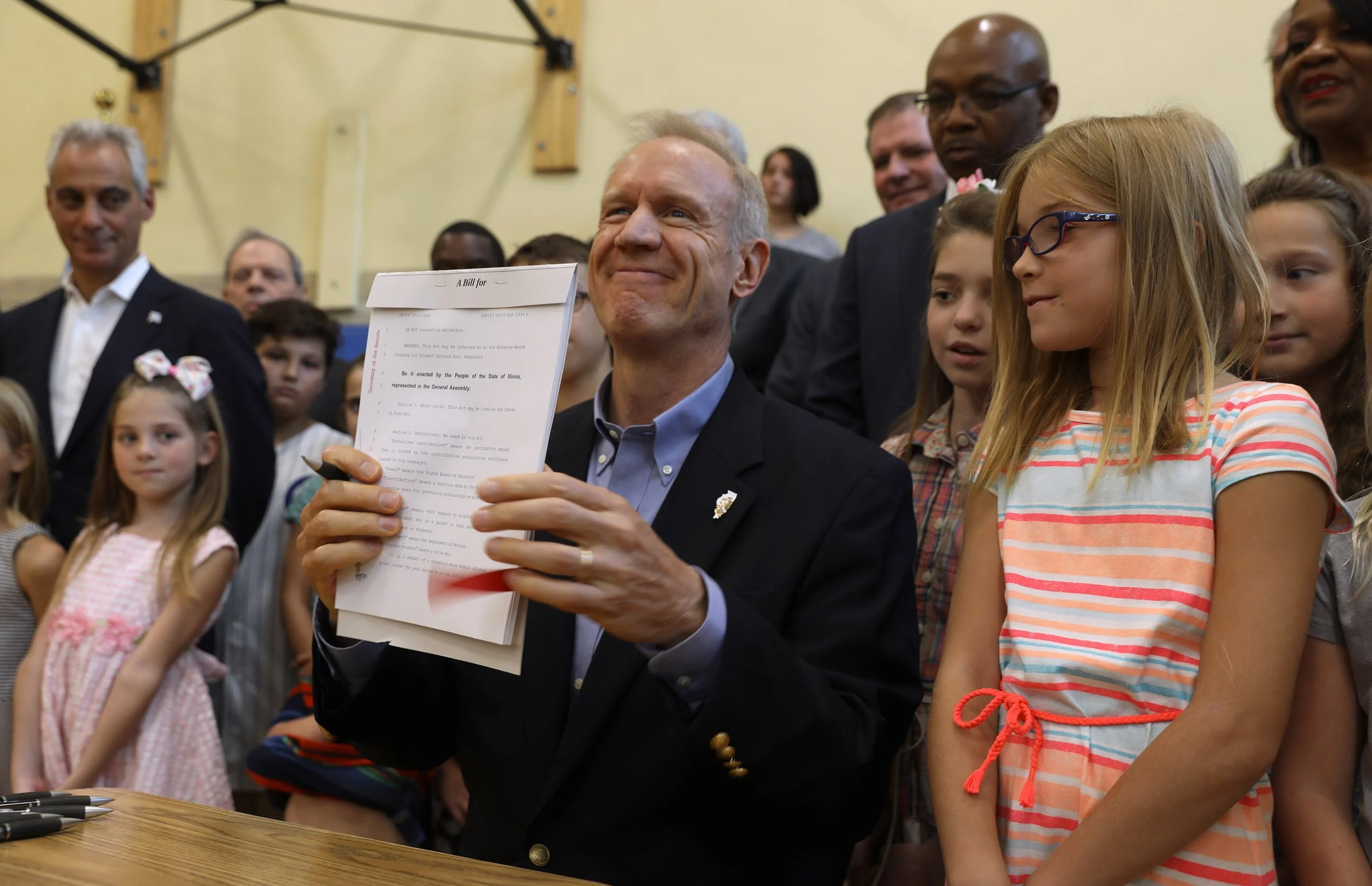 Former Governor Bruce Rauner signs an education reform bill in 2017 that established the “Invest in Kids” scholarship program. The program provides scholarships to private schools from charities. It is scheduled to expire at the end of the year.