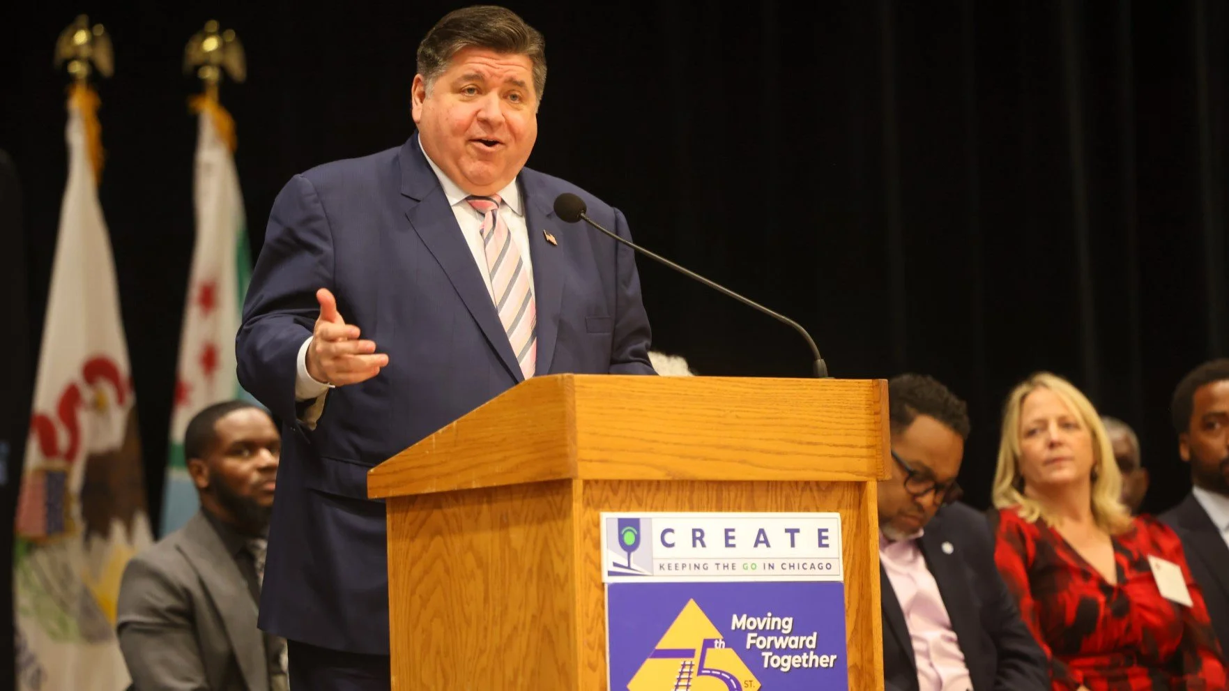 Governor JB Pritzker speaking in Chicago Monday.