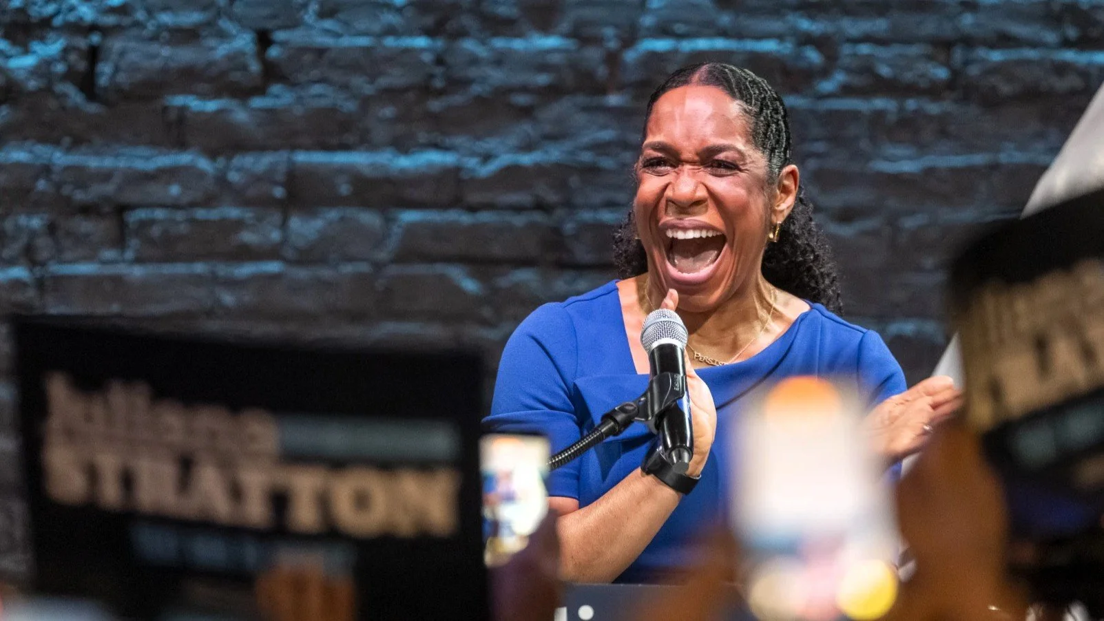 Lt. Governor Juliana Stratton celebrates her victory in the Democratic primary for U.S. Senate Tuesday night in Chicago. (Photo: Chicago Sun-Times)