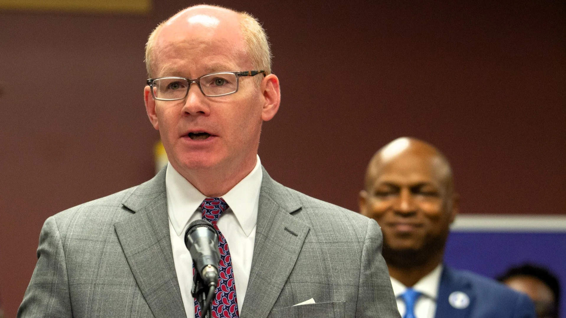 Senate President Don Harmon and House Speaker Chris Welch in 2023.